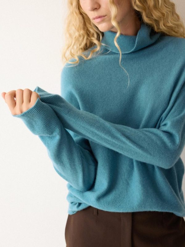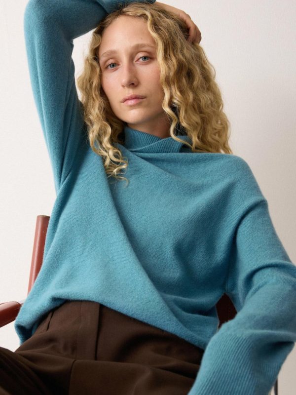 Bundle up for the colder seasons by pulling on this cosy jumper; crafted using a supersoft blend of wool and 5% cashmere for touch of luxury in the wardrobe. The relaxed cocoon silhouette is complemented by a ribbed turtle neck that can be worn folded or unfolded. Layer under dresses or tailoring pieces for the ultimate comfort.