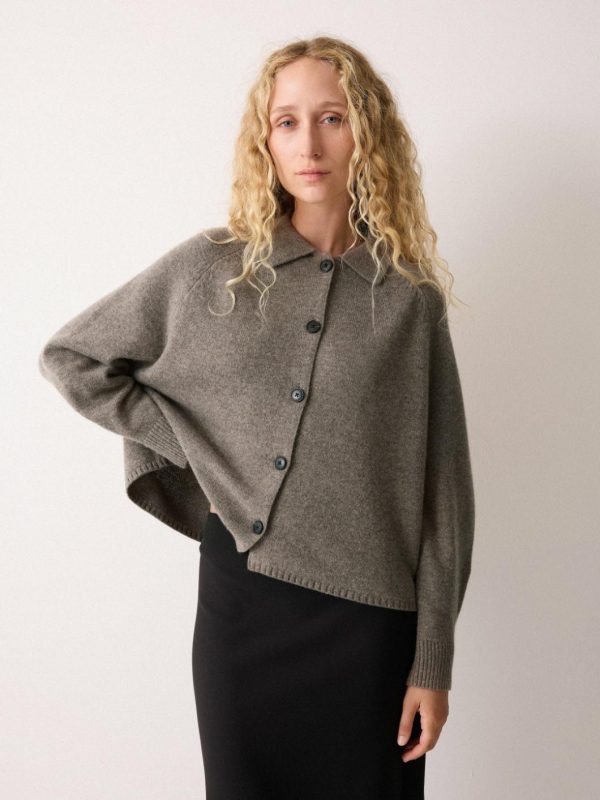 Wool Blend Collar Cardigan Taupe | Women Jigsaw Knitwear & Cashmere