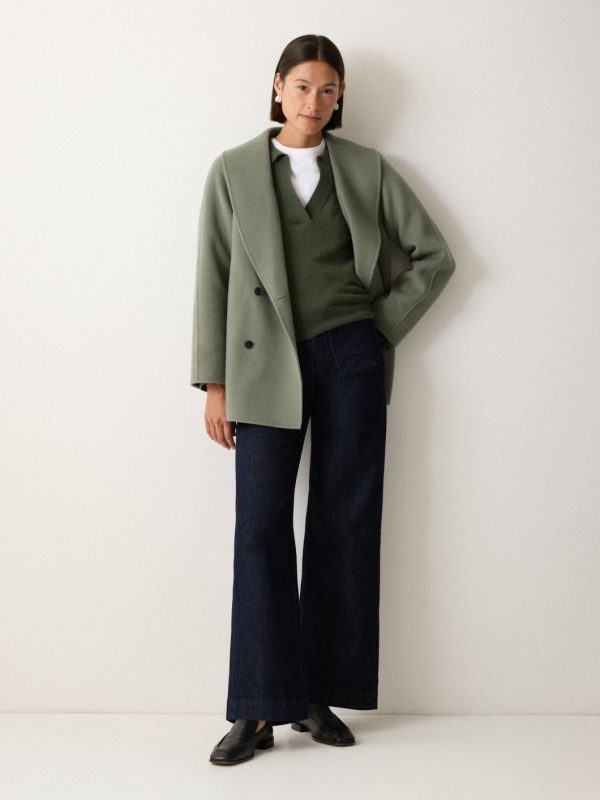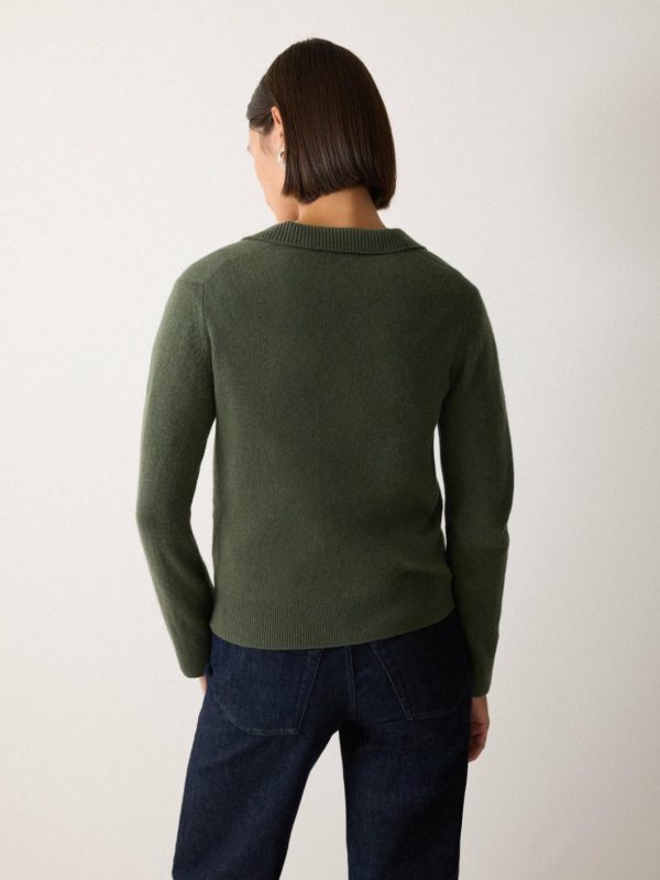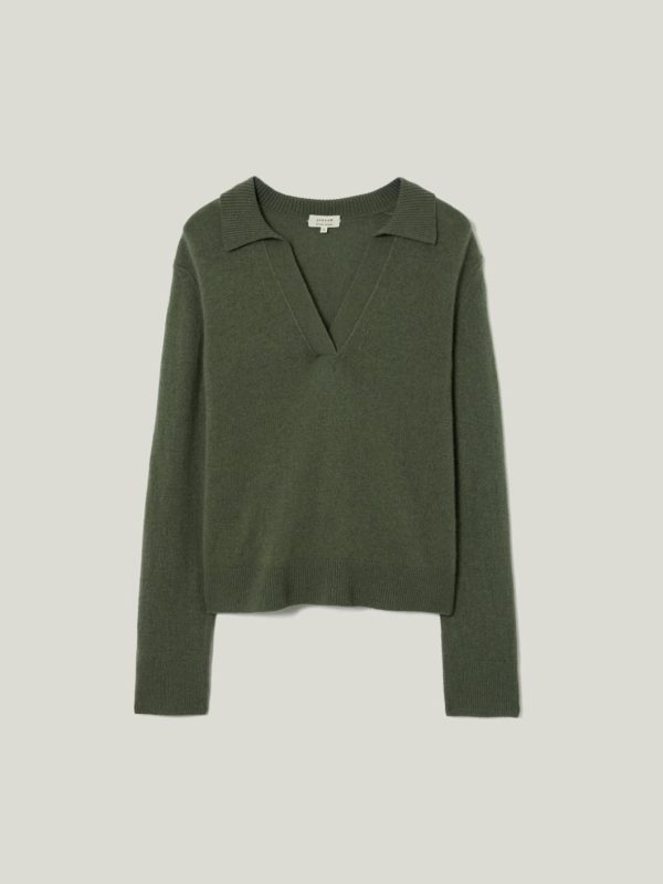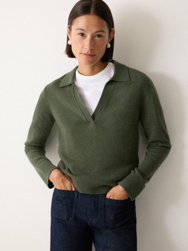 Our signature Compact Wool jumper made feminine with a sultry open neckline and a preppy collar. Super soft in a blend of wool and cashmere, we love the slightly cropped shape for creating a simple half-tuck with jeans, leather and tailoring.