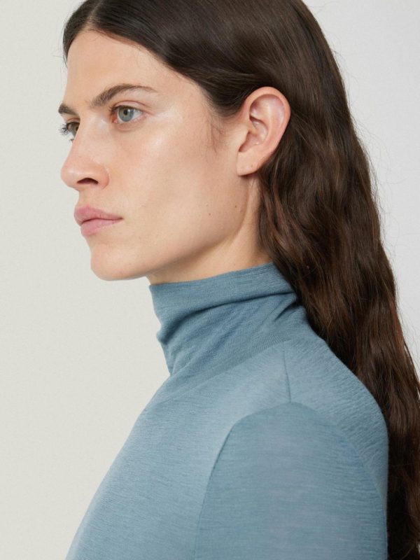 Knitted from pure merino wool, this subtly ribbed polo neck sweater is the perfect lightweight underpinning for the season ahead. Slim-fitting, long slim sleeves with a turtle neck that can be worn, folded, unfolded or scrunched up. Semi-sheer, layer under tailoring or dresses to winter-proof your outfit or to add a pop of colour.